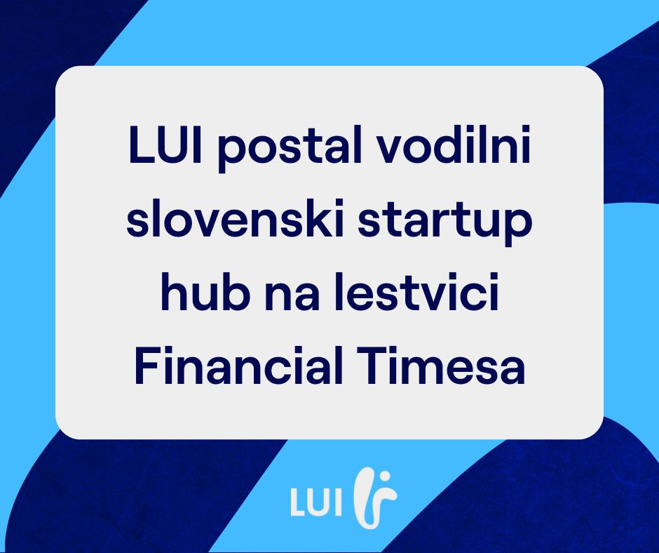 Danes je bila objavljena lestvica "Europe's Leading Start-Up Hubs 2026", ki sta jo pripravila ugledni poslovni časnik Financial Times in raziskovalna platforma Statista. Ljubljanski univerzitetni inkubator (LUI) je na tej prestižni lestvici zasedel prvo mesto v Sloveniji ter se uvrstil na 38. mesto med podjetniškimi hubi v celotni Evropi.