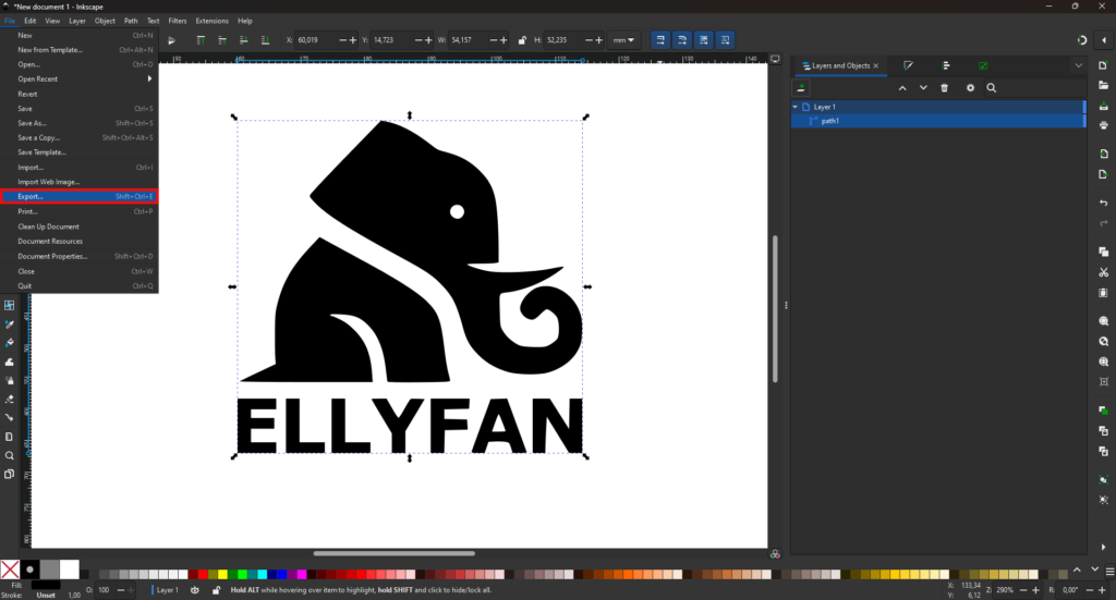 Za izvoz slike v vektorski format sta potrebna samo še dva koraka. V meniju pod ‘File’ najdemo funkcijo ‘Export…’.